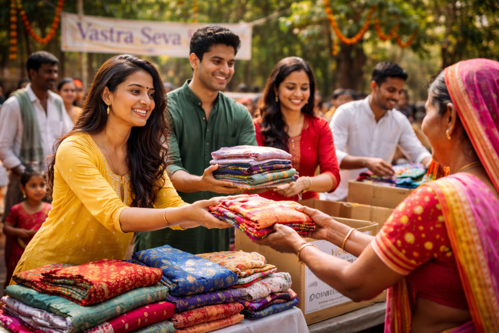 Vastra Seva started with a simple realization — so many of us have closets filled with beautiful Indian clothing that we rarely wear, while countless families in India struggle to access even basic garments.